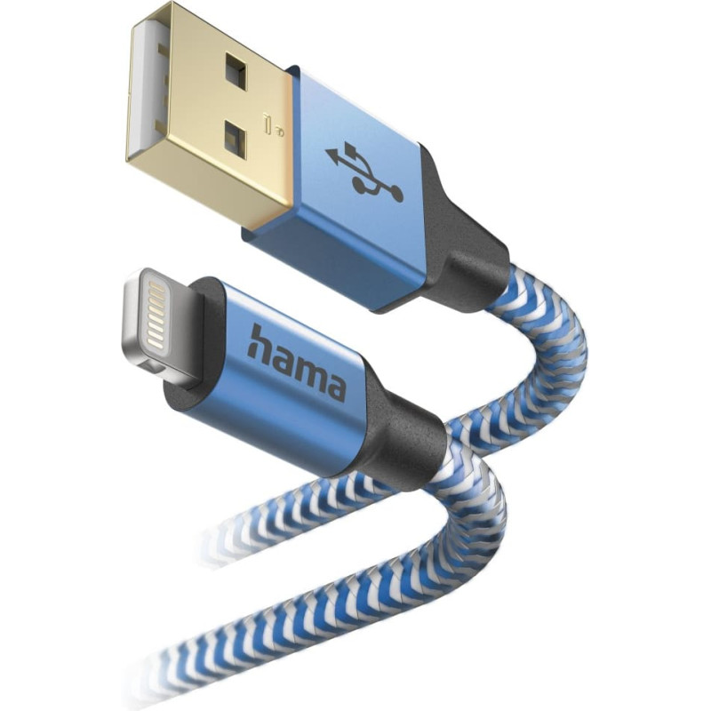 Hama 00201553 Reflective Charging Cable, USB-A - Lightning 1.5m Nylon blue