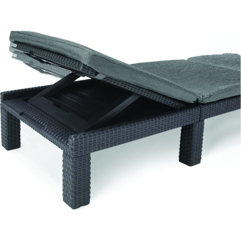 Ērti mīksti spilveni papildus palielina krēsla lietošanas komfortu. Daytona sauļošanās krēsls ir ļoti izturīgs pret bojājumiem un nevēlamu mitruma vai UV staru ietekmi.