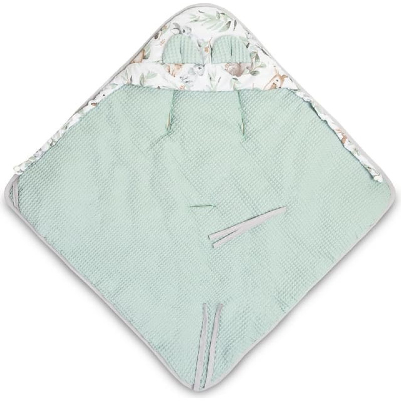 Sensillo WAFFLE CARRY-COT SWADDLE BLANKET - DEERS MINT