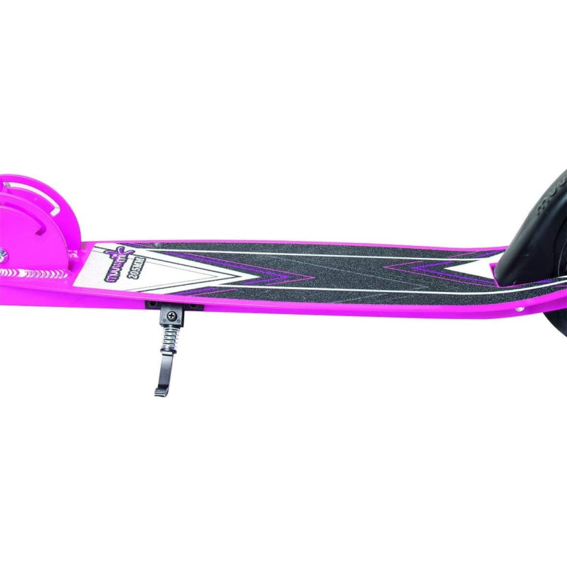 Skrejriteņa alumīnija rāmja konstrukcija. Tas ir pilnībā saliekams, lai ērtāk to uzglabātu un mazāk aizņemtu vietas. Salikšanas mehānisms ir ļoti ērts un drošs, kas ļauj skrejriteni acumirklī salikt pārvietošanai. 205 mm lieli ritentiņi no poliuretāna (PU) materiāla, kas ir izturīgi pret berzi. Tie ir triecienizturīgāki un amortizējošāki nekā plastmasas ritentiņi. Tieši tādēļ skrejritenis nodrošinās gan ērtu, gan ātru braukšanu. Skrejritenis ir aprīkots ar stūres augstuma regulējamu mehānismu un neslīdošu bremzes pedāli, lai varētu ātri un droši apstāties. Speciāla atbalsta ķepiņa skrejriteņa ērtai novietošanai. Stūrei ir iespēja nolocīt rokturus ērtākai skrejriteņa nēsāšanai.