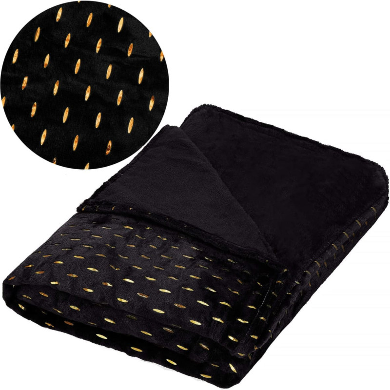 Material: 100% polyester Color: black + gold The blanket is wrapped in an elegant gray ribbon Dimensions: Total length: 220 cm Total width: 200 cm Material thickness: 3 mm Additional information: Wash at 40 degrees Do not bleach Do not tumble dry Do not iron Do not dry clean