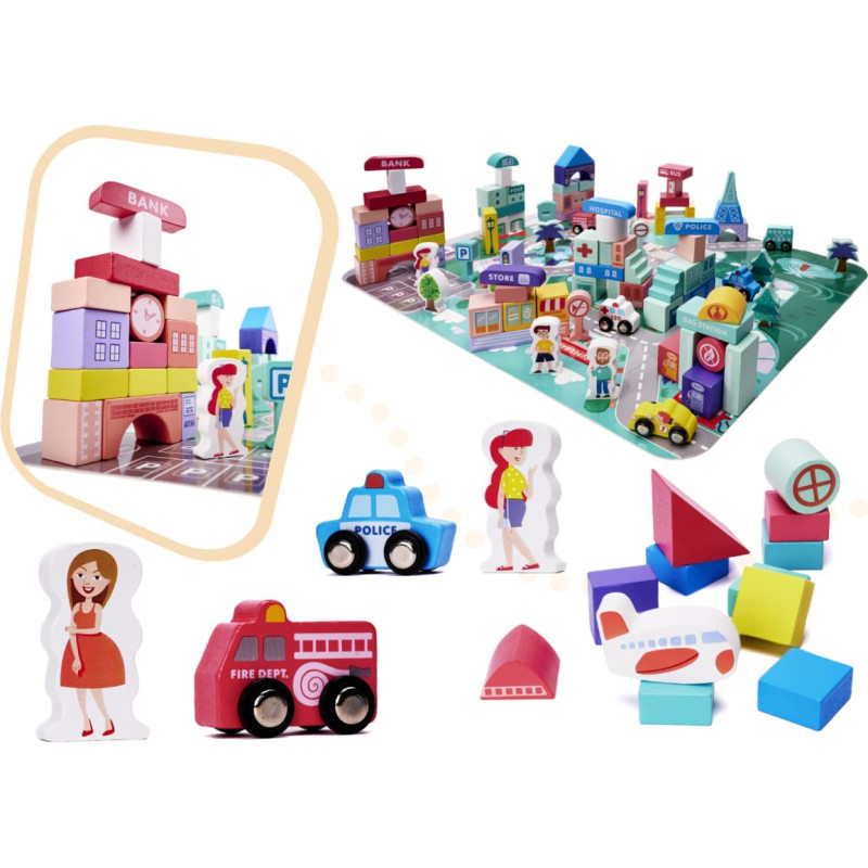 Izglītojoši koka pilsētas puzles klucīši 128el.