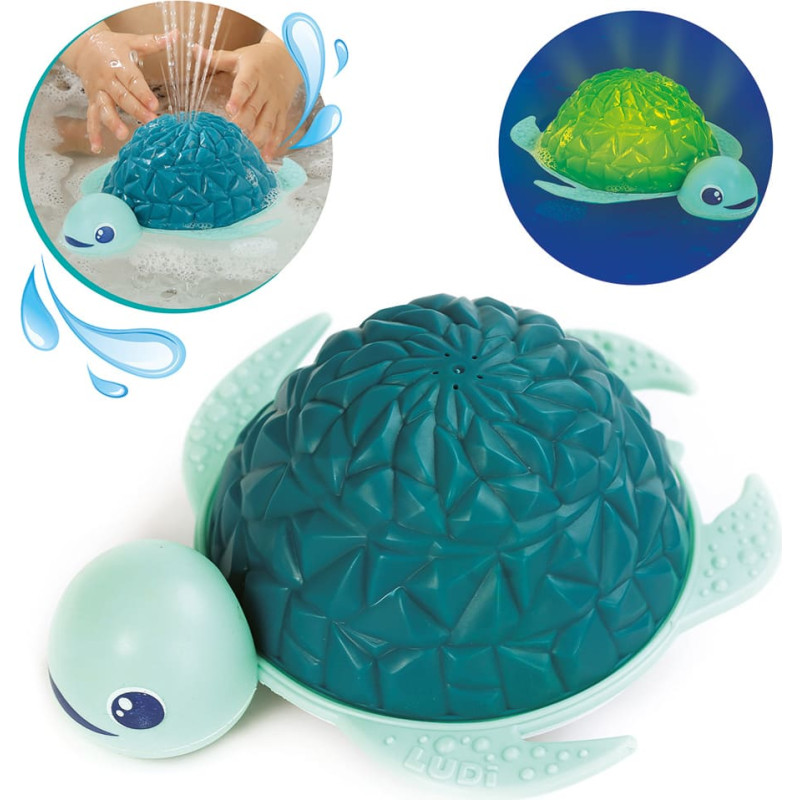 When placed in water, this adorable turtle shoots out water jets and its shell lights up.