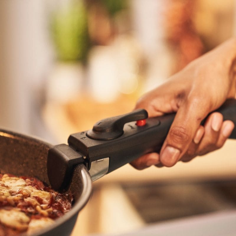 *Rekomendējam gatavot ēdienu uz mazas liesmas. Ja ir nepieciešams gatavot uz lielas liesmas, pakāpeniski uzkarsējiet pannu līdz nepieciešamai temperatūrai. Ieteicams izmantot koka vai speciālās plastmasas lāpstiņas. Nav ieteicams griezt produktus uz pannas.