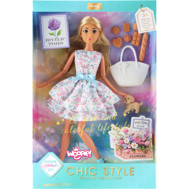 Woopie ROYAL Lalka Lily 30 cm Wiosenna Suknia Akcesoria Piesek Piknik