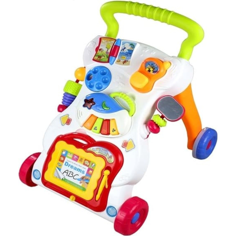Rotaļlieta-stūmējs palīdzēs jūsu bērnam iemācīties staigāt un uzturēt pareizu stāju. Rotaļlieta pozitīvi ietekmē bērna psihomotorisko attīstību, bērns iemācīsies atšķirt formas un krāsas. Turklāt rotaļlieta pozitīvi ietekmē roku darbību attīstību.